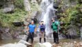 急登の登山道を外れ小さな沢を登っていくと、今回の登攀開始ポイント、Bガリー大滝が現れました。鳳凰三山から朝日が昇ると同時に登攀開始です。