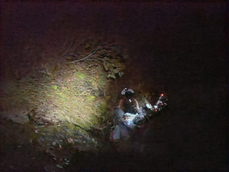 翌朝2時に計画通り起床。とりあえず起きてその辺の岩を触ったところ… 夜中の強風の影響かそれなりに乾いていてフリクションは問題なさそうです。雲も晴れており天気予報も回復傾向なので、とりあえず取付を目指します。