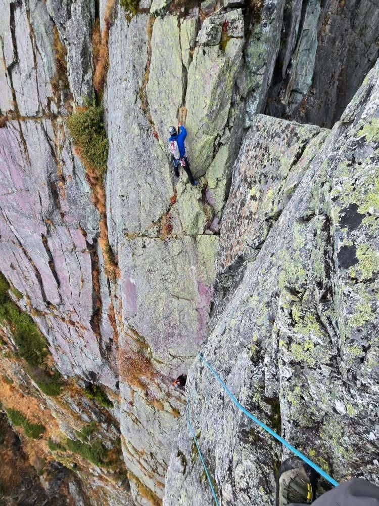 懸垂が終われば再びスラブ。今までより悪い&ボルトがないスラブルートで少し緊張。無理やりカムを決めてなんとかボルトまで登ります。