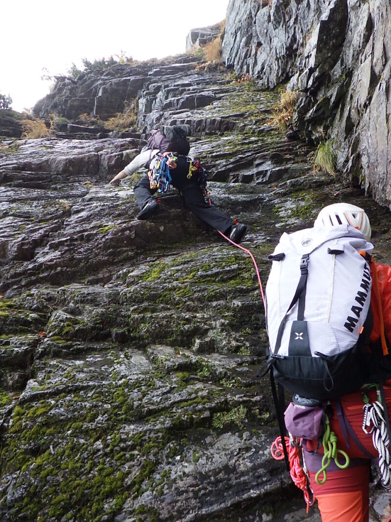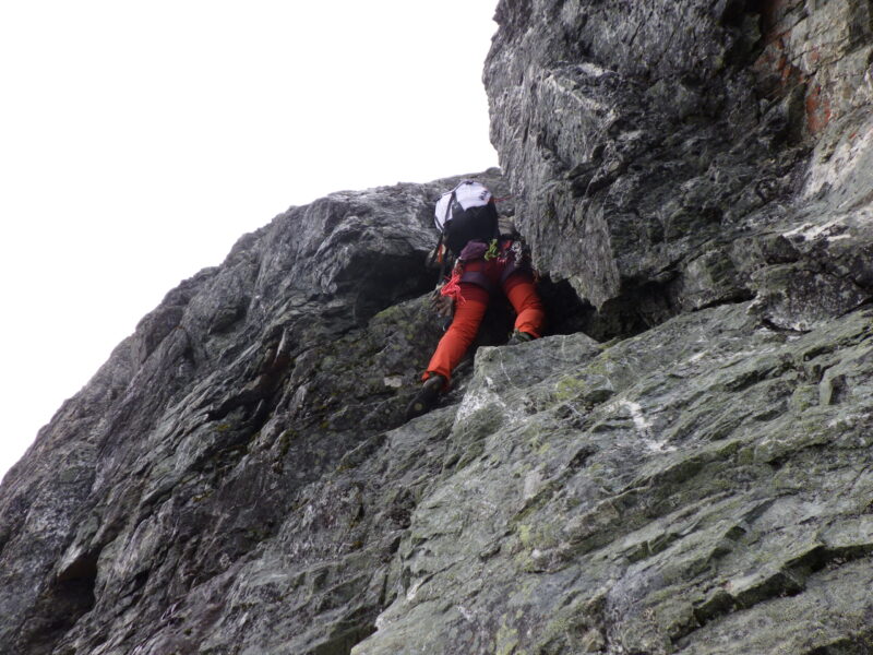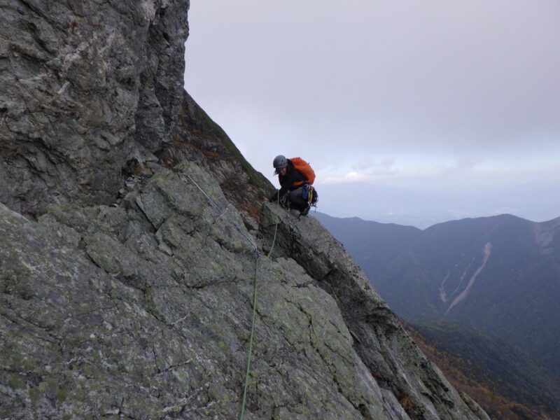 ここまでくればあと2ピッチ。切り立ったトラバースとラスボスのチムニーです。