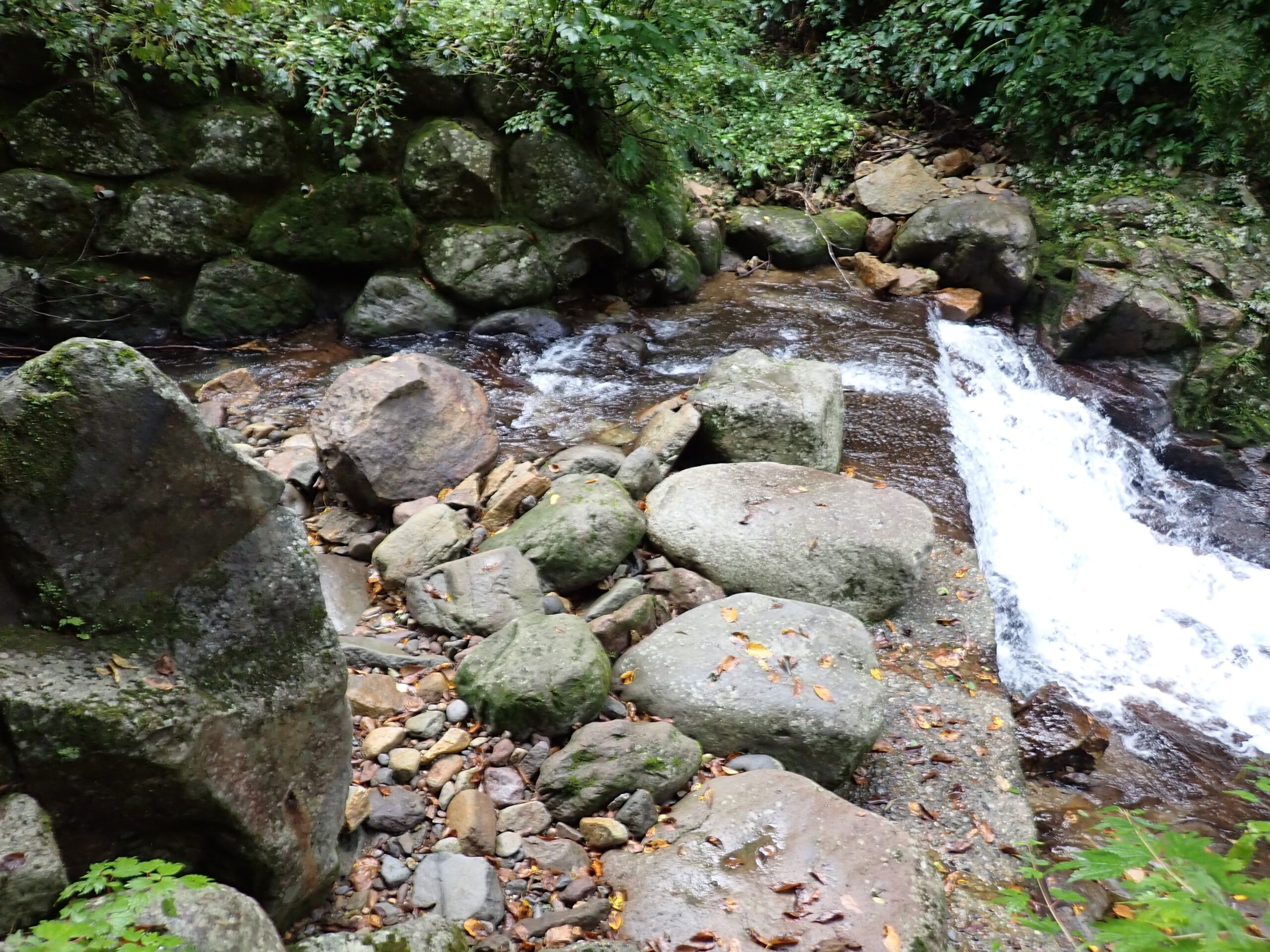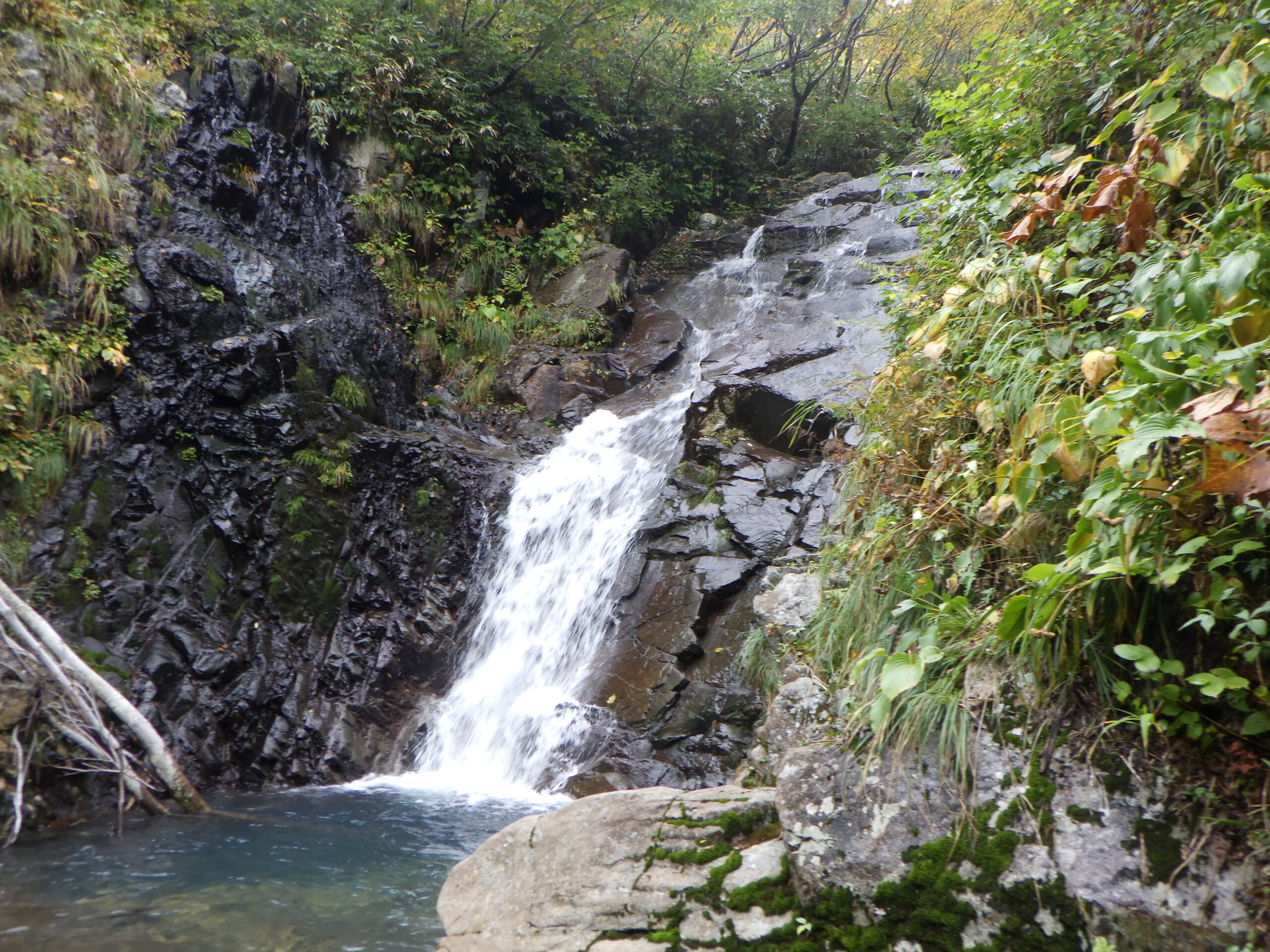 八反滝から上流でやっと沢登りになる。ゴーロの間にナメっぽい地形が現れるのはやっぱり白山が火山だからだろうか。