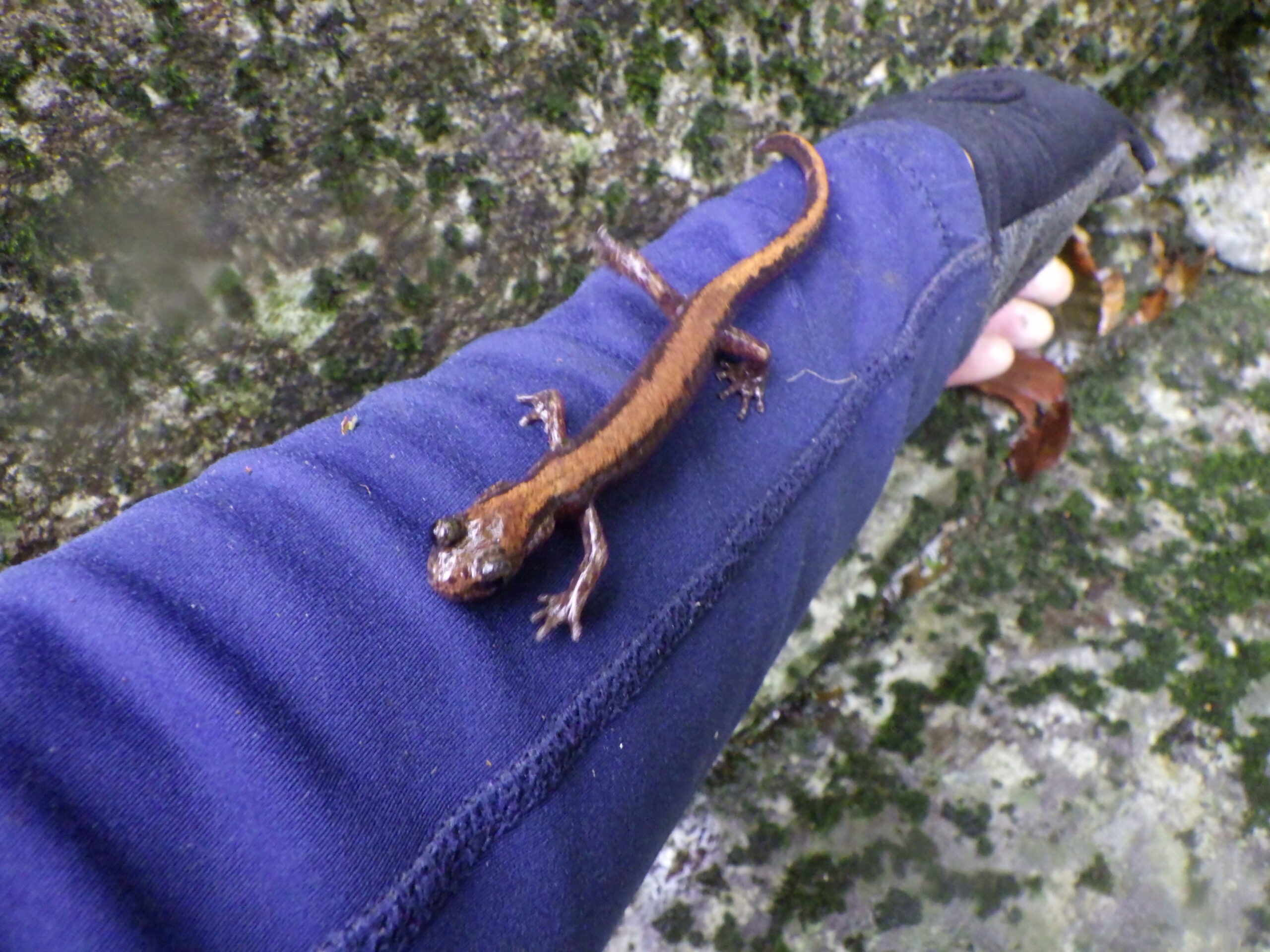 三つ目の滝マークの滝は15m程の滝、ここは右岸から短く巻く事が出来た。その前にいつも忘れる集合写真。滝の上ではたまちゃんがまたまたサンショウウオを見つけてご満悦。 四つ目の滝マークの滝は水流左から簡単に超える。藪を漕がずに滝を超える事が出来て何だかうれしい。