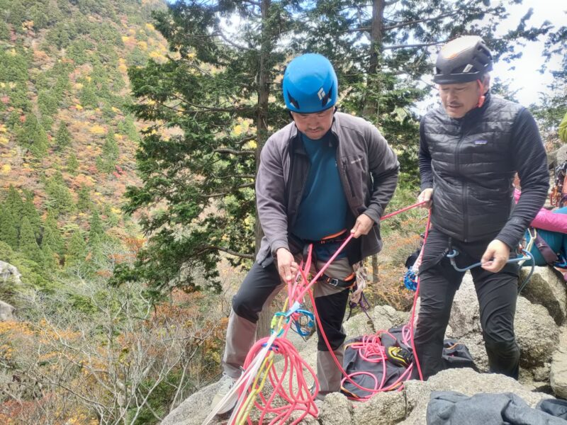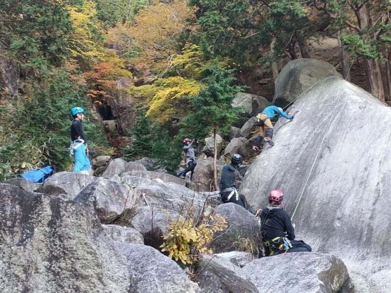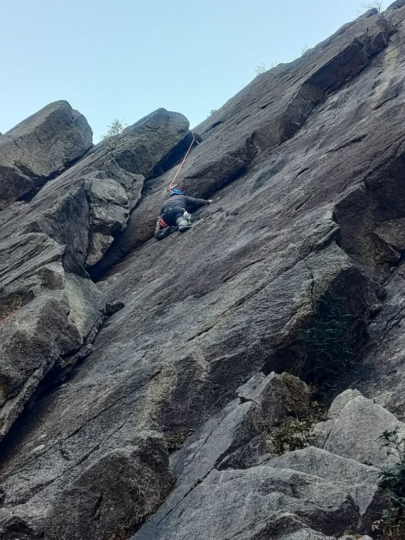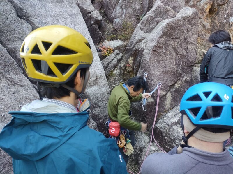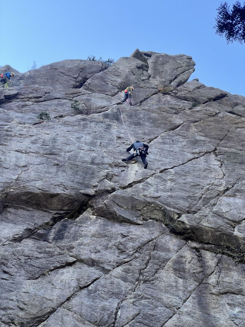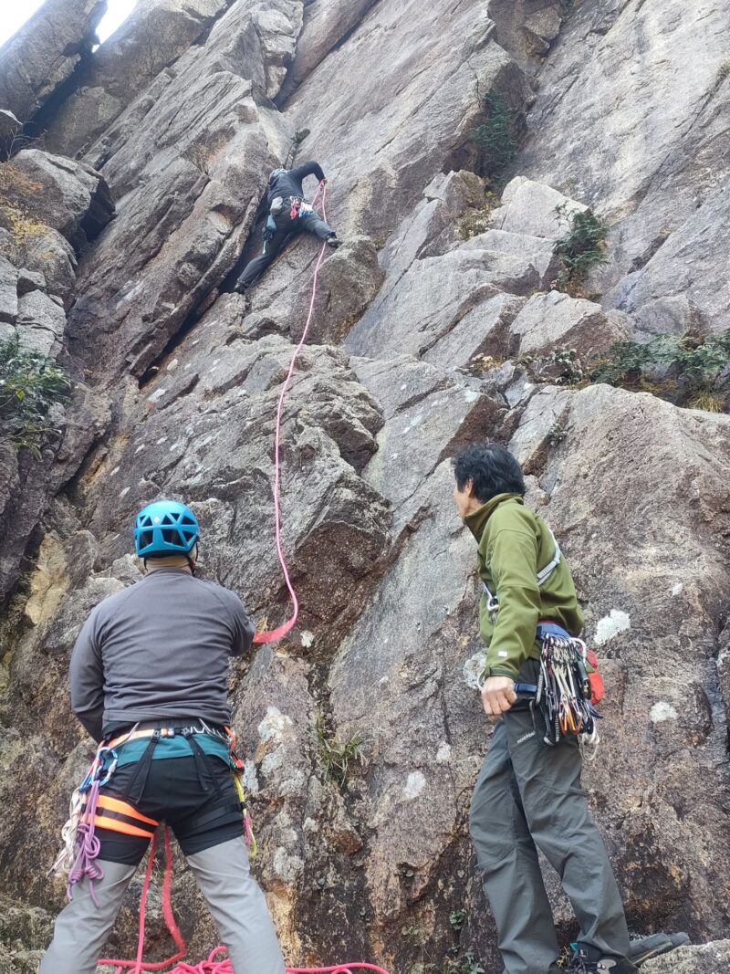この日、外岩が初めてのカツさんに付きっきりで支点構築やリードのいろは等を伝授されていました。カツさんの気持ちやペースを大事にされていて、こうせいさんの優しさがうかがえます。