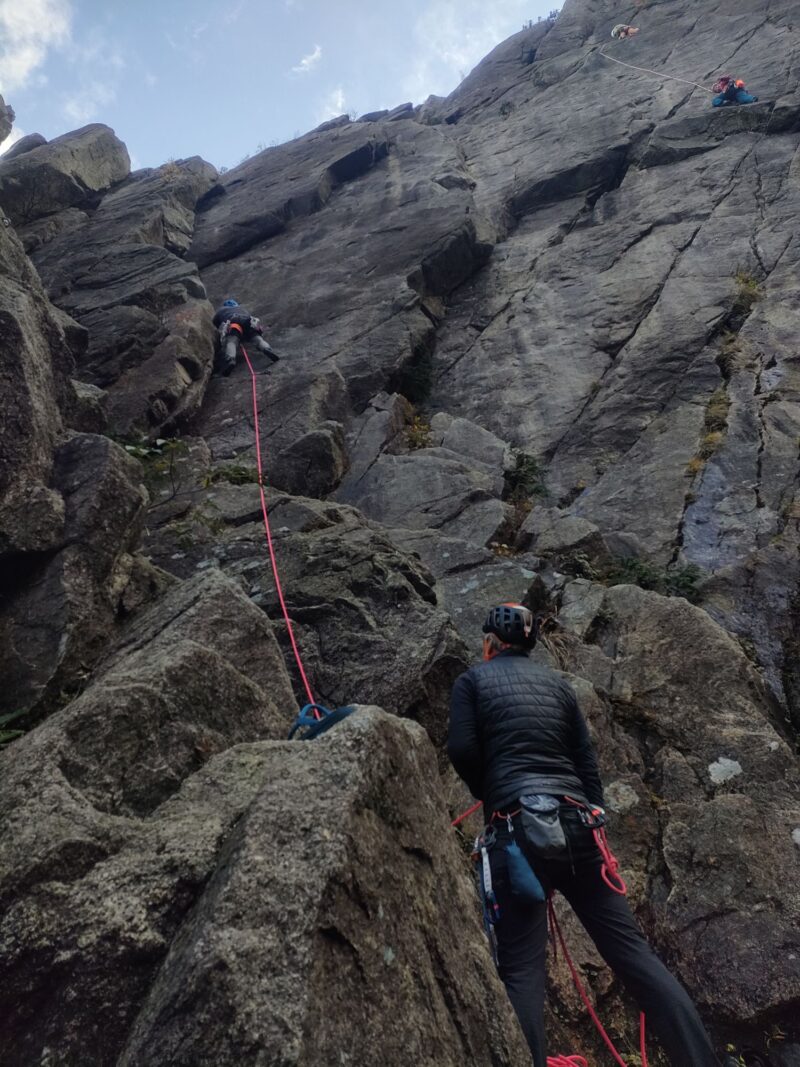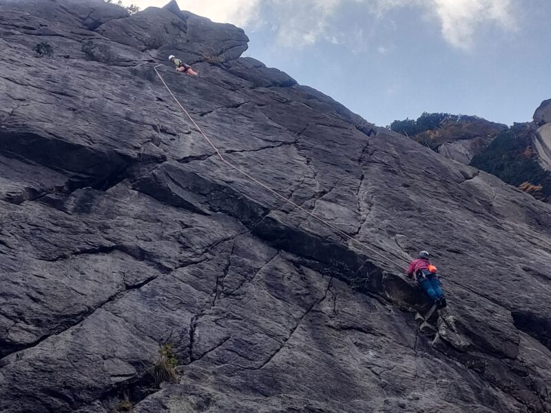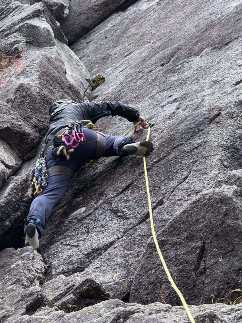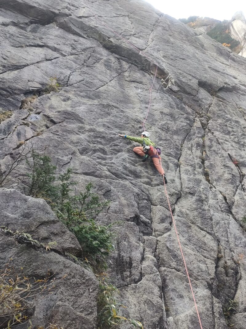 今年、八ヶ岳や北岳バットレスでリードもされているりーさん。よく「怖い」と口にされますが、それでもしっかり登りきるところを見ると強いなと思います。あの名言の力でしょうか。この日も目標に定めていた2ルートと3ルートを無事リードで登りきりました!