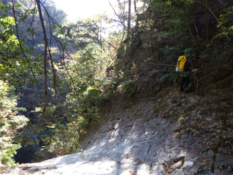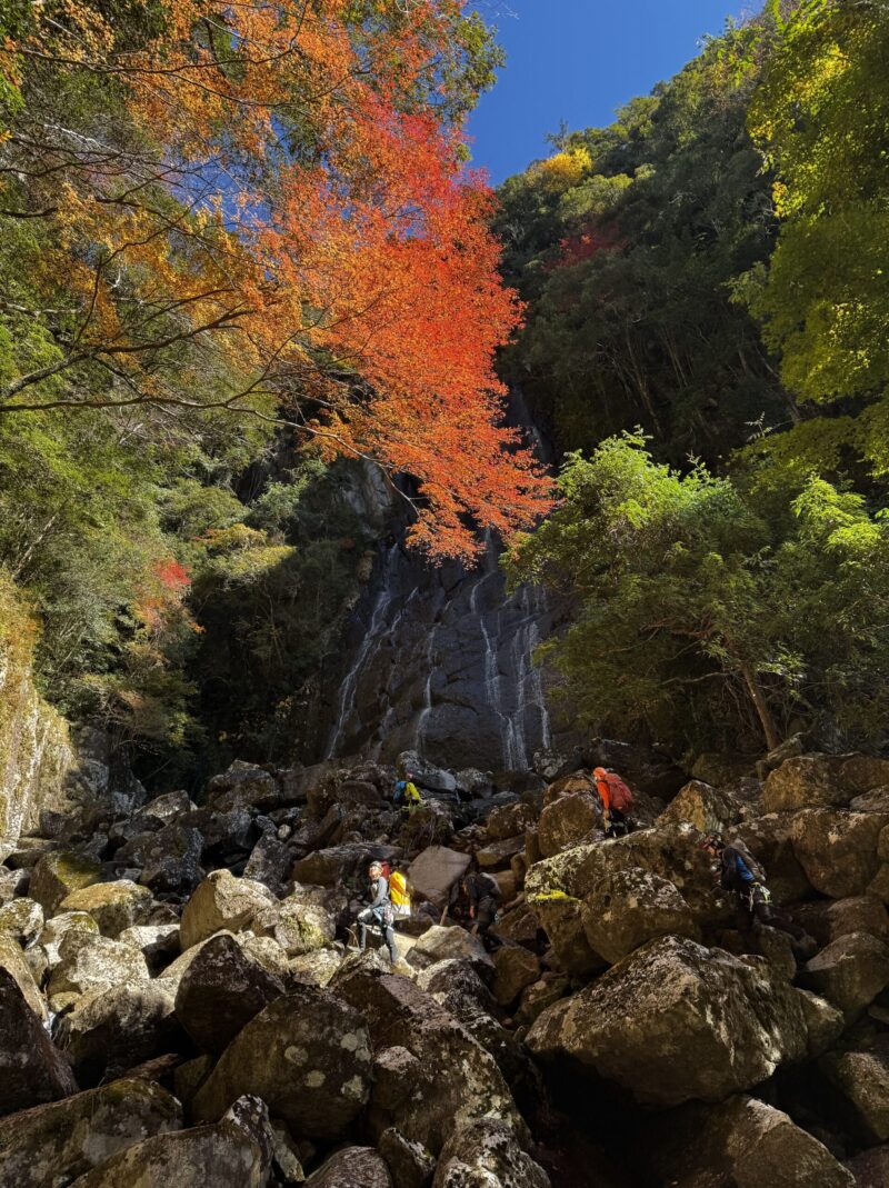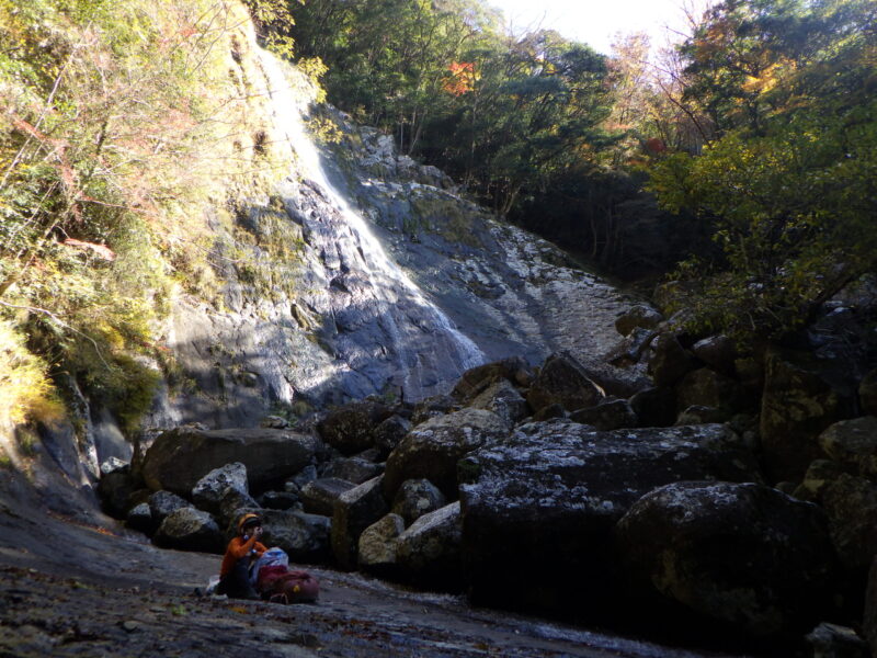 【2日目】 ケヤキ平〈泊地〉(9:25) ~ 源助滝(10:35) ~ 下和気登山口(11:40)