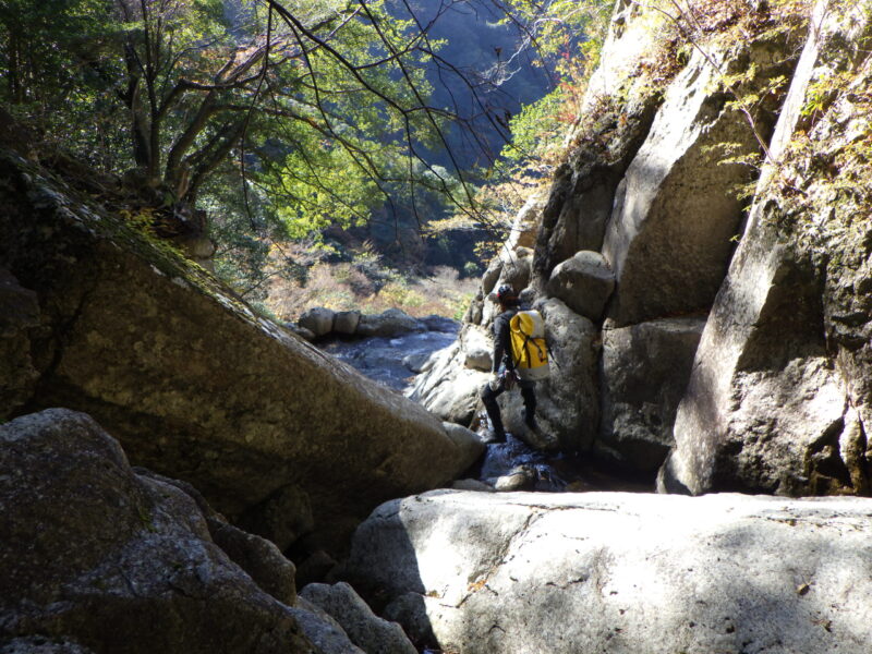 景色を堪能して二股に戻り、本流を遡行再開です。牛鬼滝はじめ見栄えのする滝や柱状節理の豪快な嵓が次々に現れて飽きさせません。