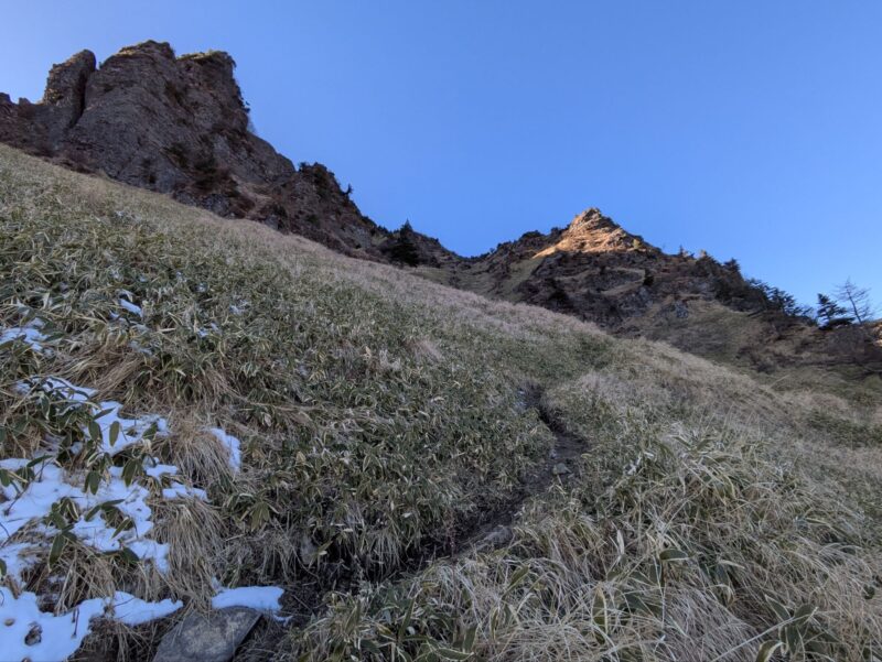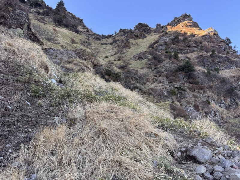 草すべりの登り返しは、予想通り(予想以上?)に急登で、ここが今回の核心部でしたが、なんとか乗り越え、無事下山できました(^^)