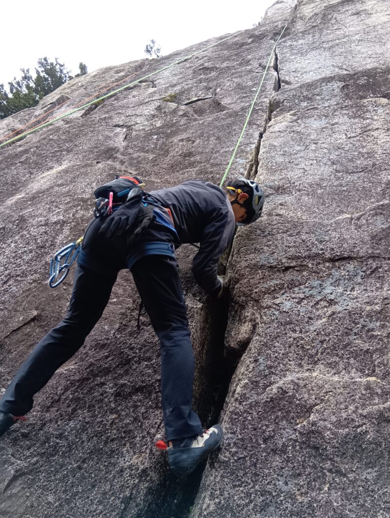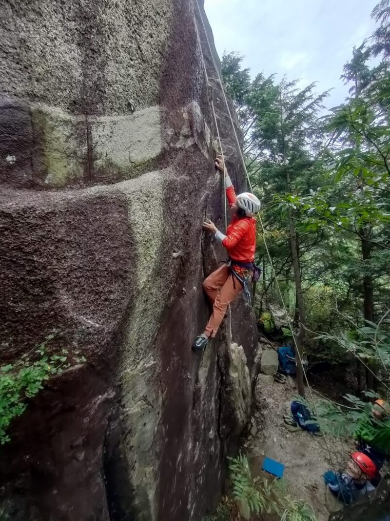 今回皆んな各々の課題に挑戦して練習しました。御在所の岩場といえば一壁や前尾根が有名ですがこんな所もあるんだと私は初めて知りました。 私には全く敵わない所でしたが、とても良い練習になりました。いつかは登れるようになりたいです。