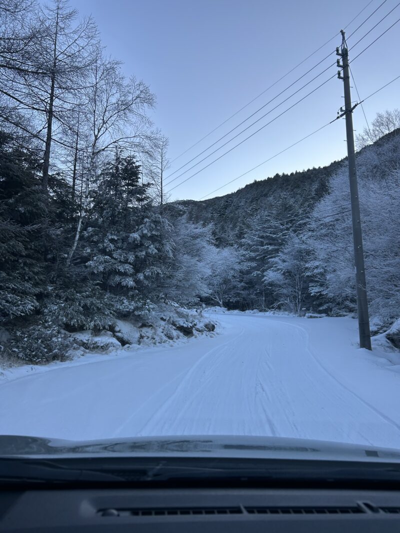 唐沢鉱泉駐車場が近くなってくると雪が現れはじめました。りかさんの四駆スタッドレスのおかげでこの登山口までたどり着くことができました。