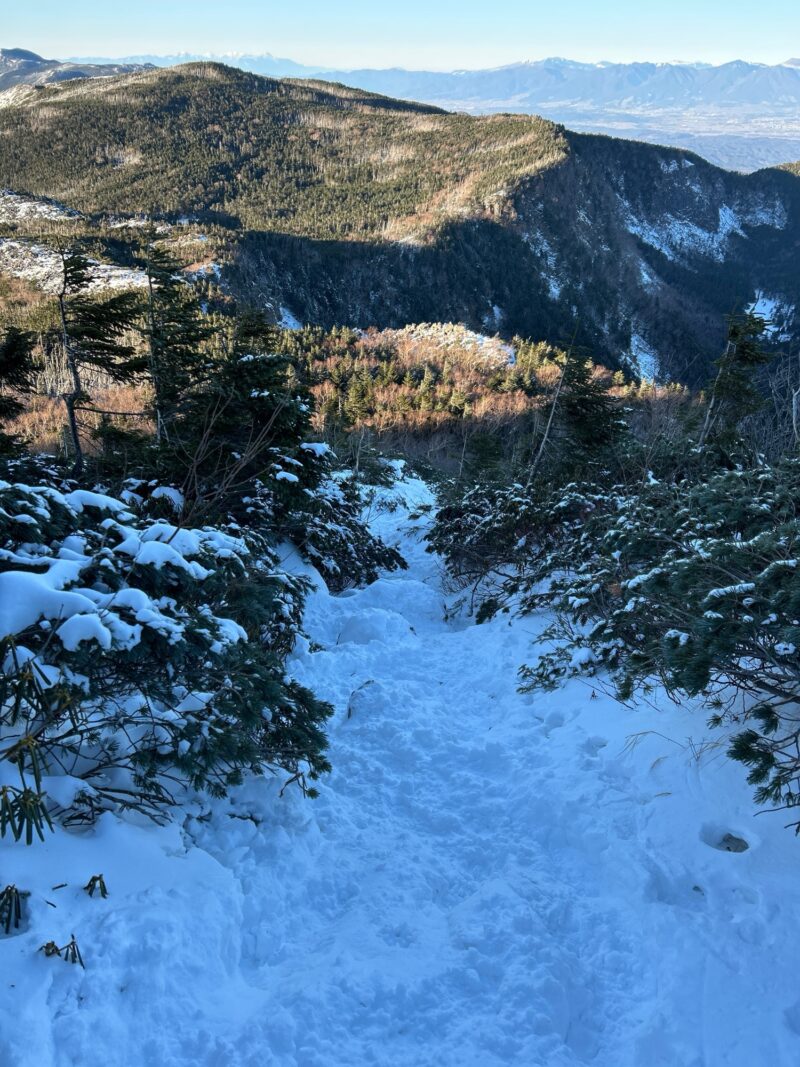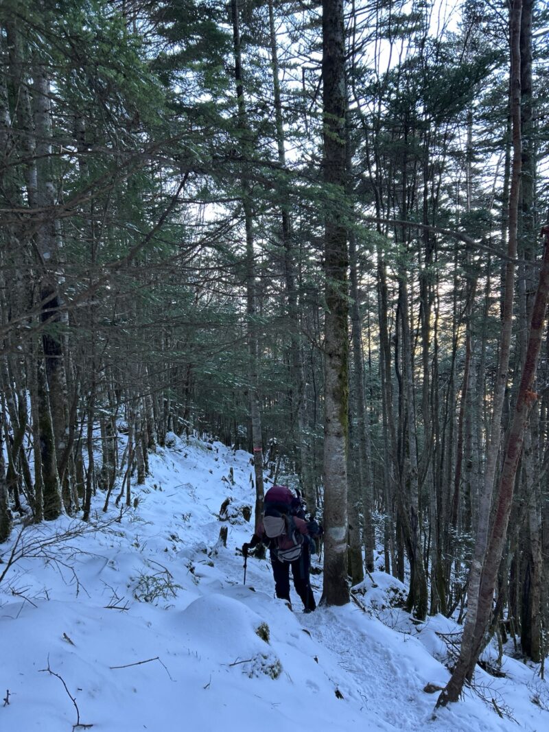 雪薄く、慎重に進みました。アイゼンワークの練習にもなりました。