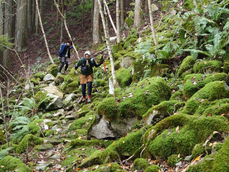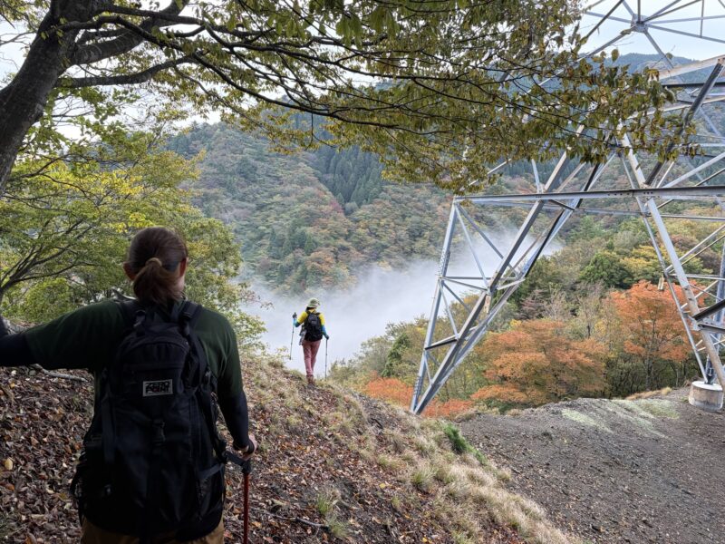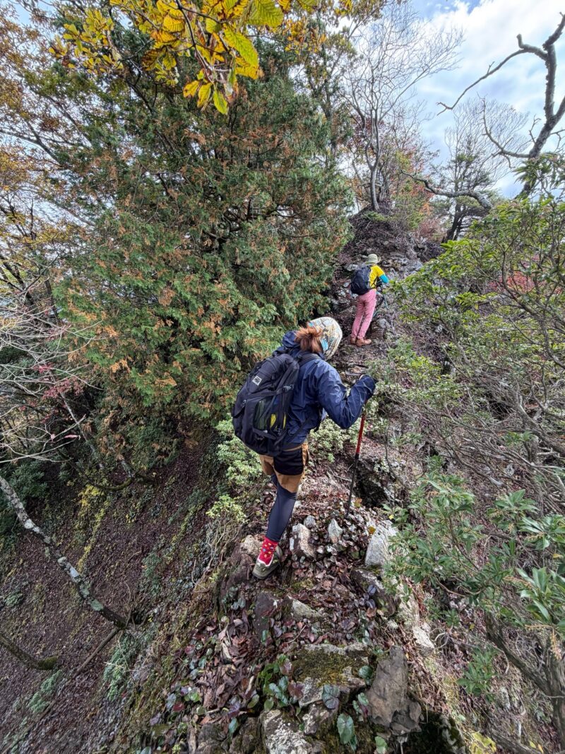 登りは急登の黒尾山ルート。丸山までは普通の急登ですが、庭戸山を過ぎたあたりから両側切れ落ちたナイフリッジや壁のようなよじ登り、黒尾山を越えたら超絶危険な細尾根に痺れます。
