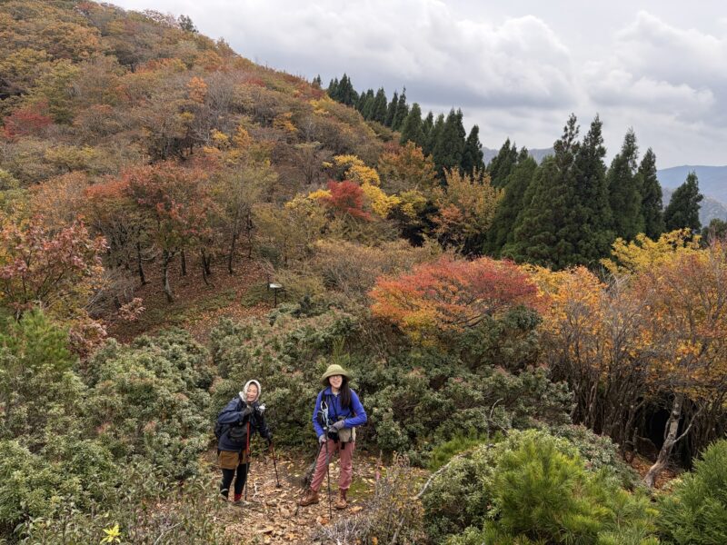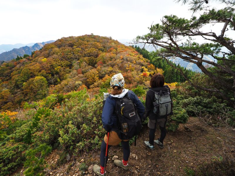 難所を越えて最後の急登をクリアしたら銚子ヶ口。紅葉の展望広がる稜線歩きです。