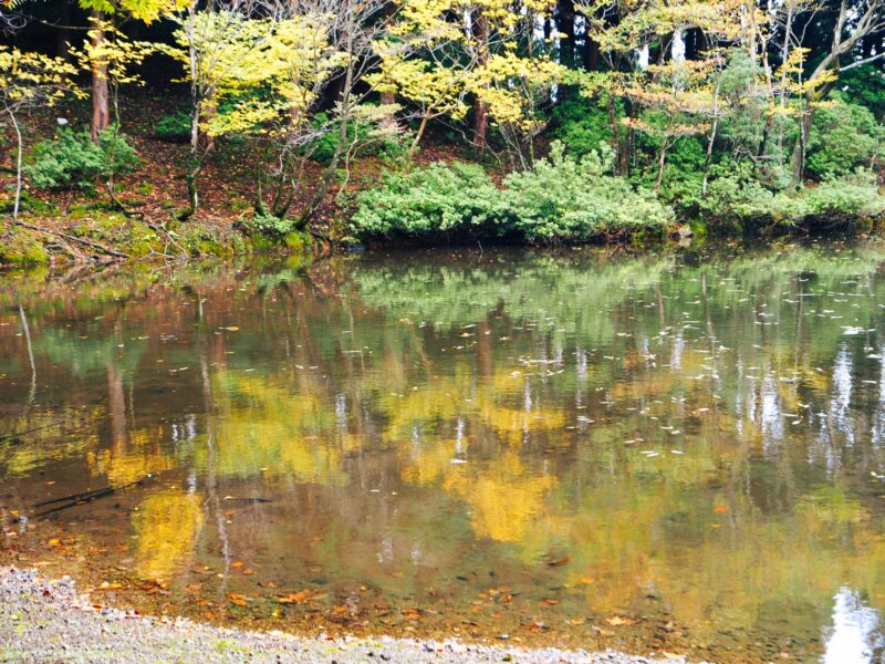 晴れ予報のはずだったのに強風なうえ若干曇っていて、水舟の池もどんよりしていましたが、帰り道は少しずつ晴れ間が出てきて紅葉に光が当たってきました。