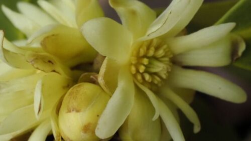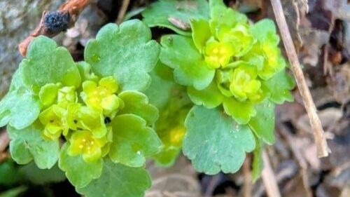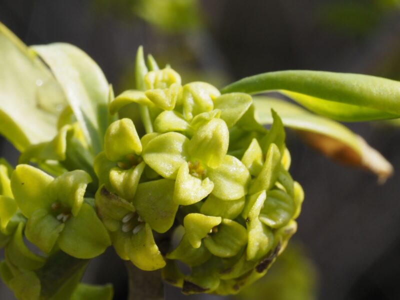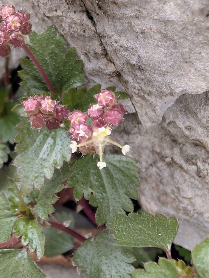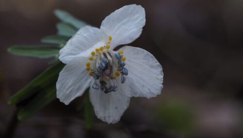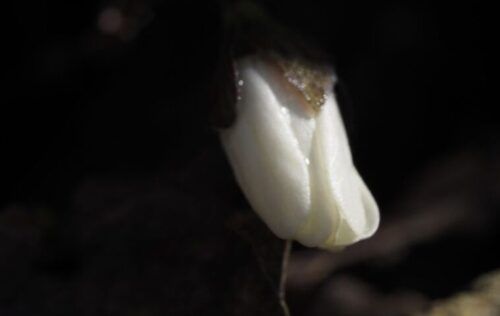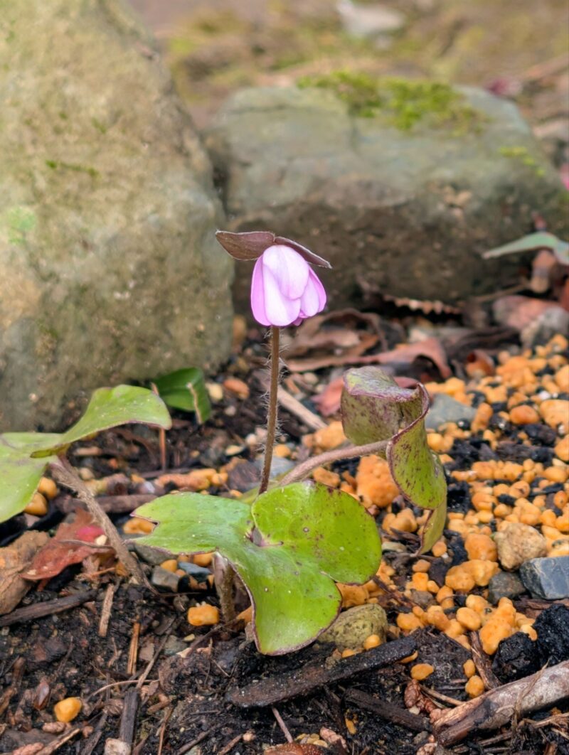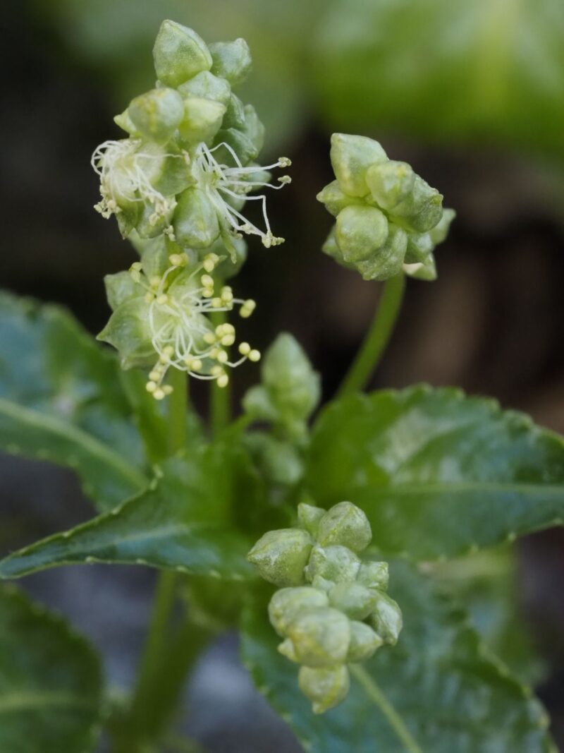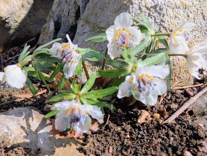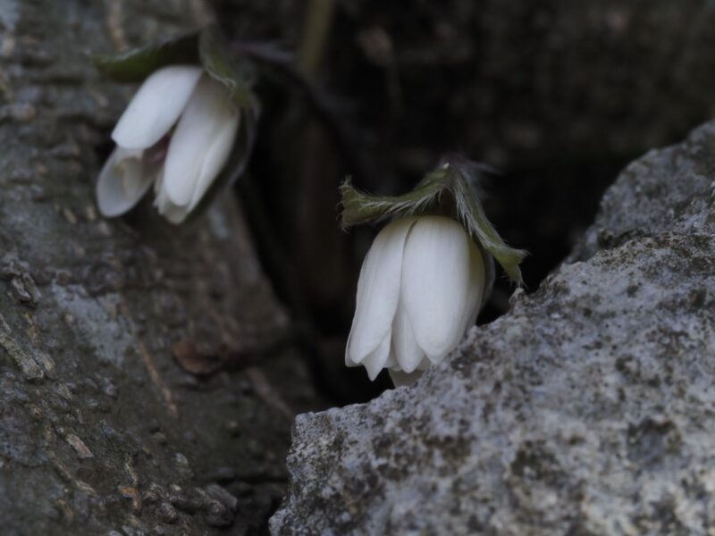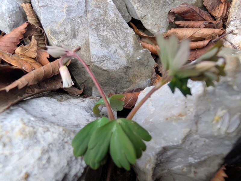 この敷地を通らせてもらい裏山で作業されているから方からセリバオウレンが咲いているよと教えてもらい早速撮影。