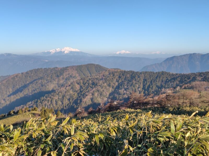 左から御岳、乗鞍、遠く穂高も見えます