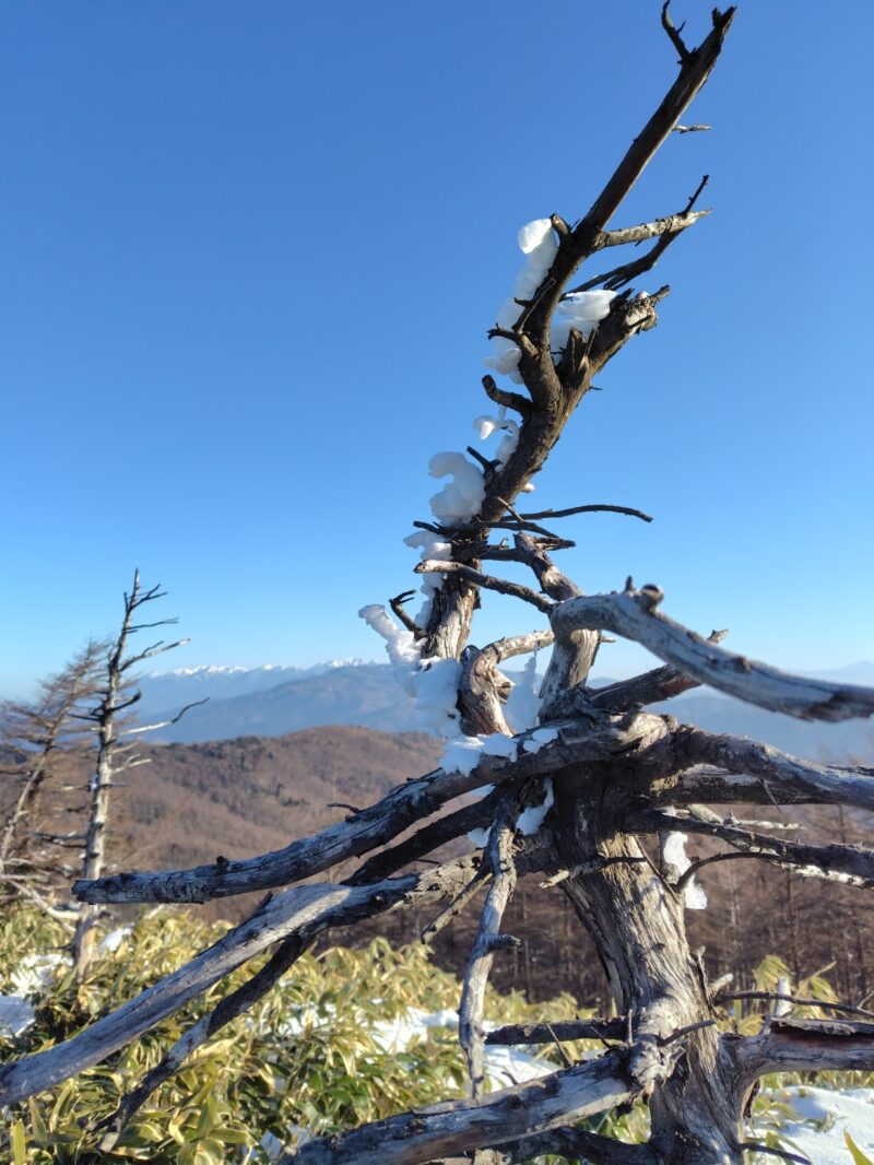 予想通り、雪は少なめで樹氷も厳しいと思われていた通りの行程でしたが、お天気良かったので、御嶽山、乗鞍、南アルプスの山々がとても綺麗に見られてスッキリ爽やかな登山になりました。