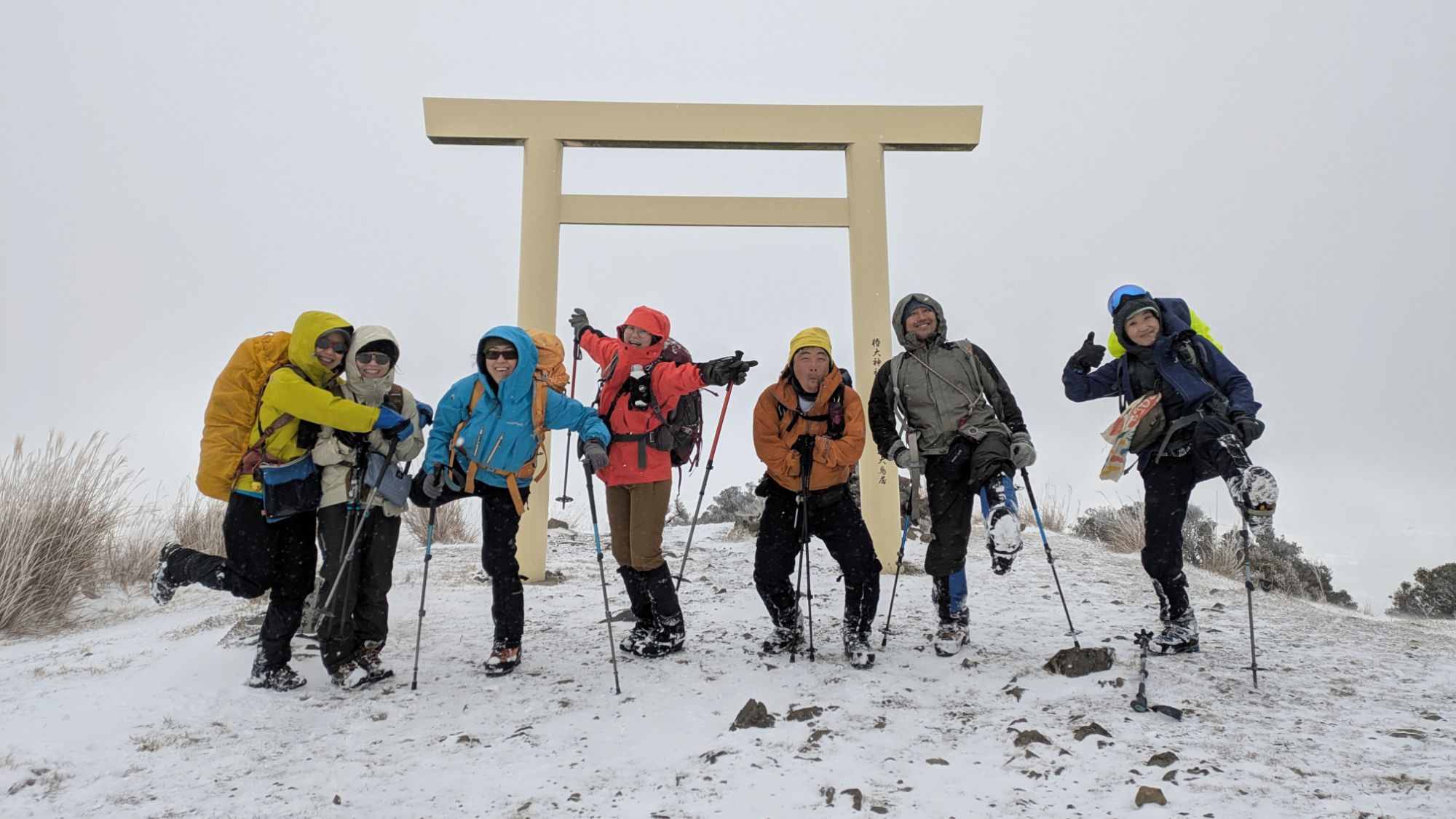 奥宮を後にし、入道ヶ岳山頂の白い鳥居の前で、これまた記念撮影して下山。新年から鈴ハイの面々とお会いできて幸せでした(^^)