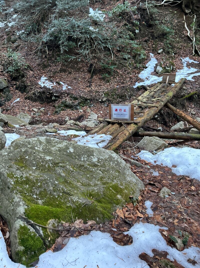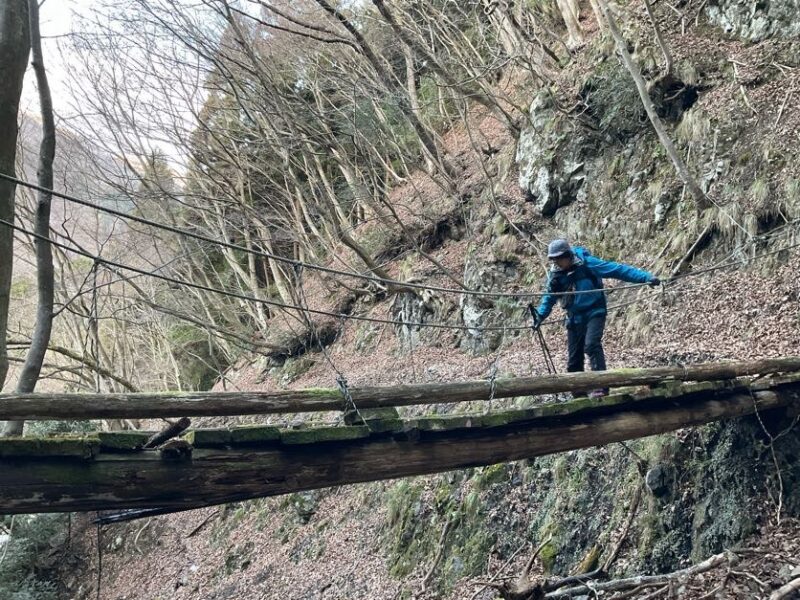 何ヶ所も吊り橋を渡ります。この橋はまだ渡れましたが、通行止の標識がある所もありました